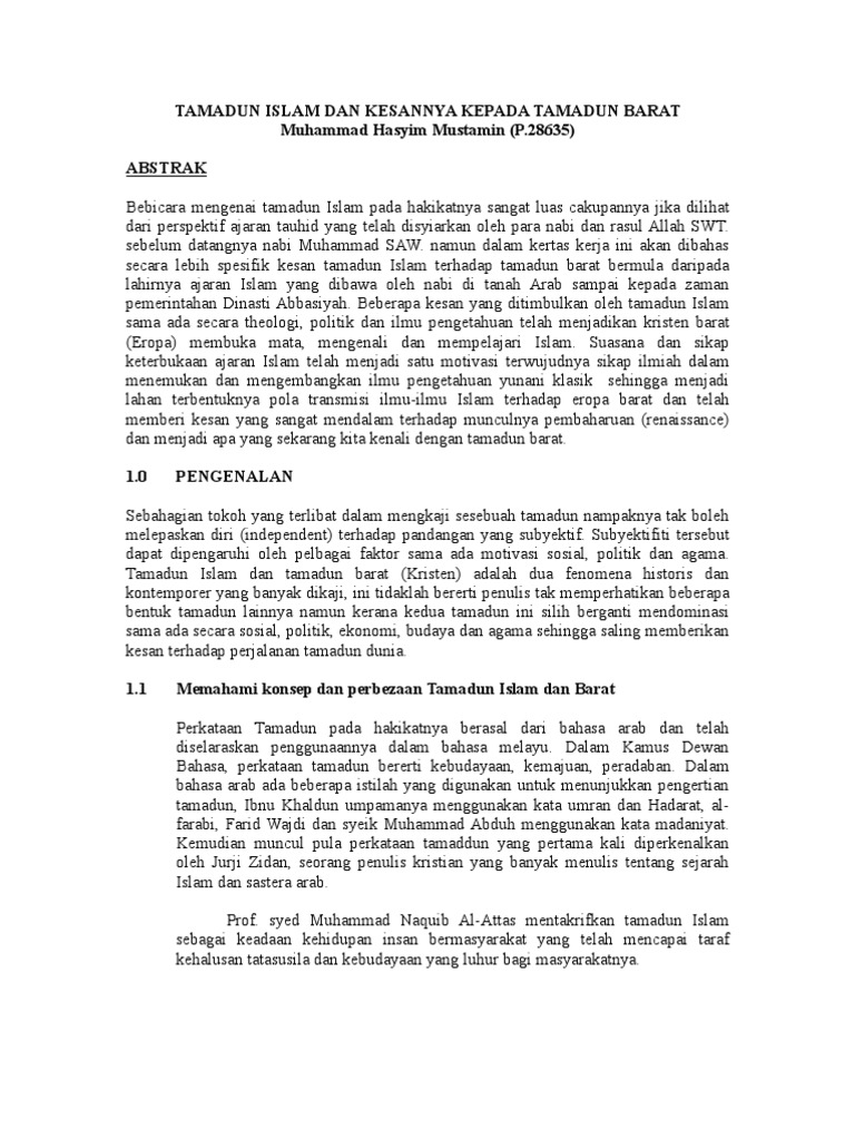 Islam menjadi cara hidup yang mencakupi keseluruhan kehidupan manusia, samada keduniaan atau keagamaan. Dalam masa yang sama perana agama disempitkan kepada. Persamaan perbezaan antara tamadun mp3 & mp4. Bagi sarjana islam, tamadun bermula dengan pengutusan nabi dan rasul. Sumber utama pemikiran tamadun barat ialah tamadun greek yunani yang mementingkan logik akal dan kepercayaan kepada apa yang mampu dicapai oleh perbezaan utama di antara tamadun islam dengan tamadun barat.